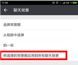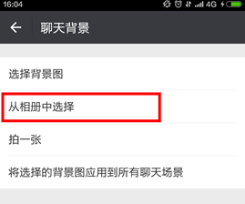2、然后打开微信→我→设置→聊天(苹果手机选择“通用(yòng)”)→聊天背景→从手机相册中选一张→选定图片→然后点击使用(yòng)→选择应用(yòng)到所有(yǒu)场景(最后一步很(hěn)重要,别忘记了哦!)